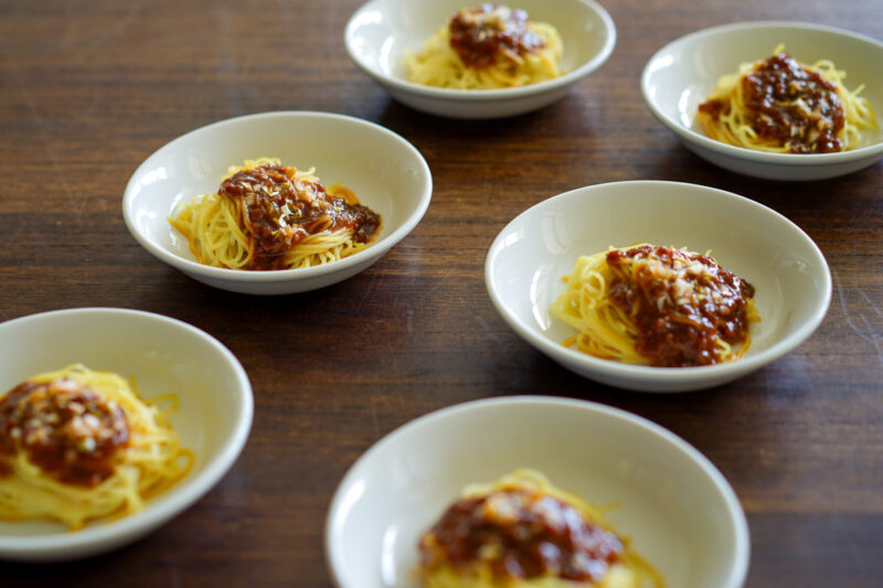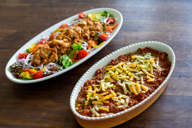 7種のスパイスで煮込んだひき肉ソースに2種のチーズをのせたタコライス風メニュー。ごはんがすすむお子さま向けの味付けです。