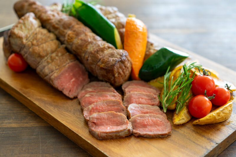 じっくり低温調理で仕上げた、旨みたっぷりのローストビーフ。自家製の香醤と、仔牛のだし(フォン・ド・ボー)を使った和洋仕立てのソースが、贅沢な味わいを引き立てます。