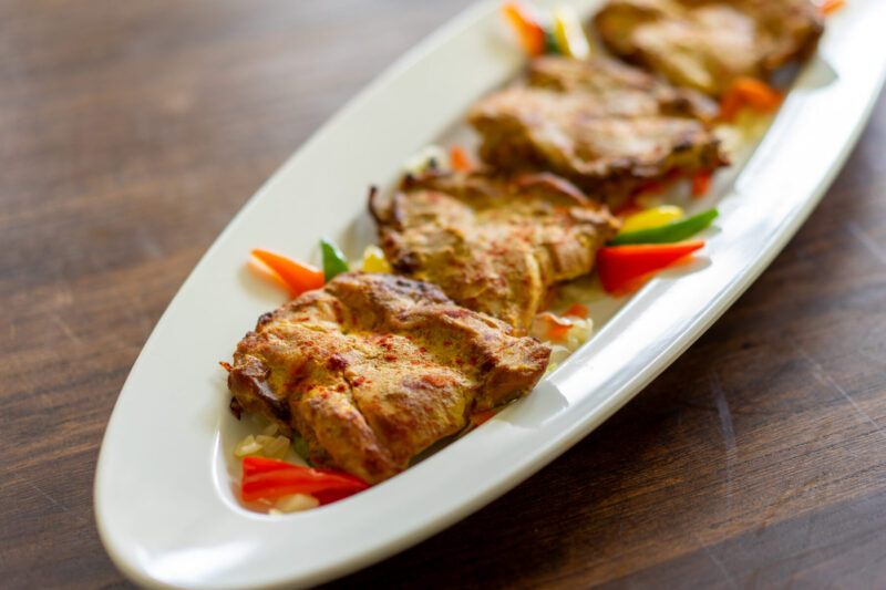 玉城牧牛乳の自家製ヨーグルトに漬け込み、独自配合のスパイスで仕上げた特製タンドリーチキン。スパイスの香りとジューシーな肉の旨みが広がる一皿です。