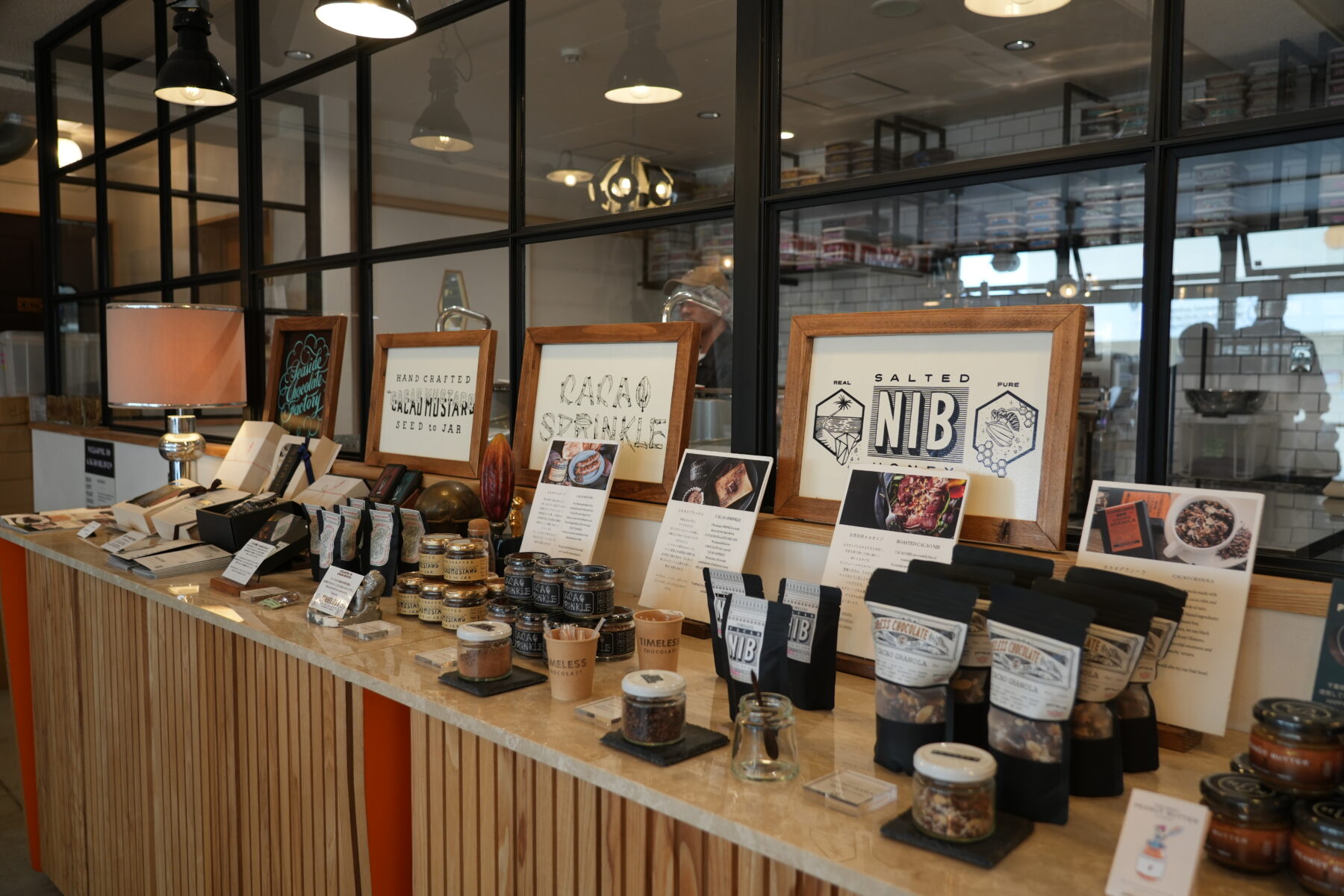 チョコレートにする前のカカオ豆(カカオニブ)を使ったマスタードやグラノーラなど、板チョコだけではない商品も充実。