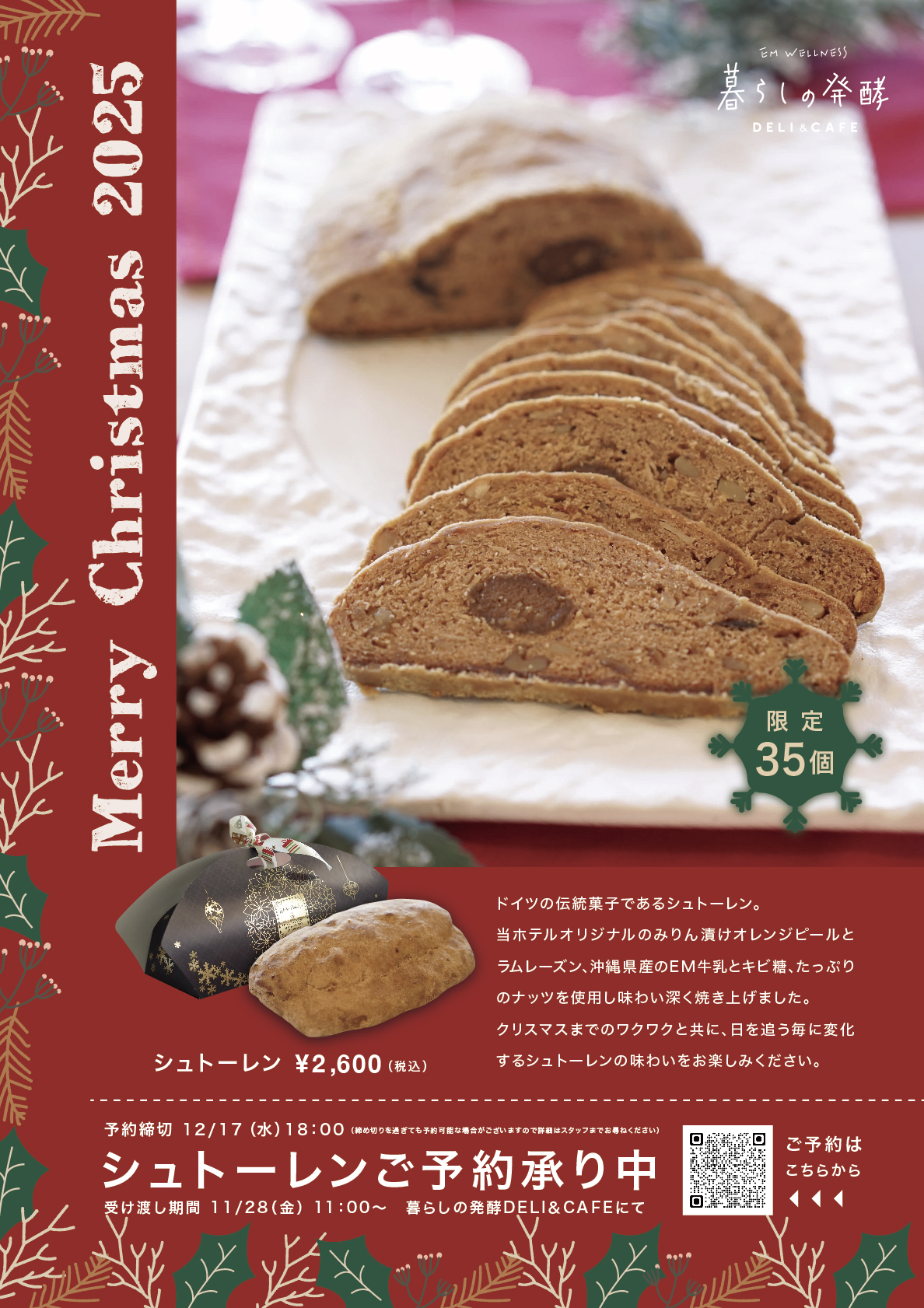 心と体をやさしく包み込む「発酵」と「癒し」のクリスマス。人気のシュトーレンや限定クリスマスケーキ、贈り物にぴったりのスパギフトチケットなど、特別なひとときを彩るメニューを順次ご紹介していきます。
