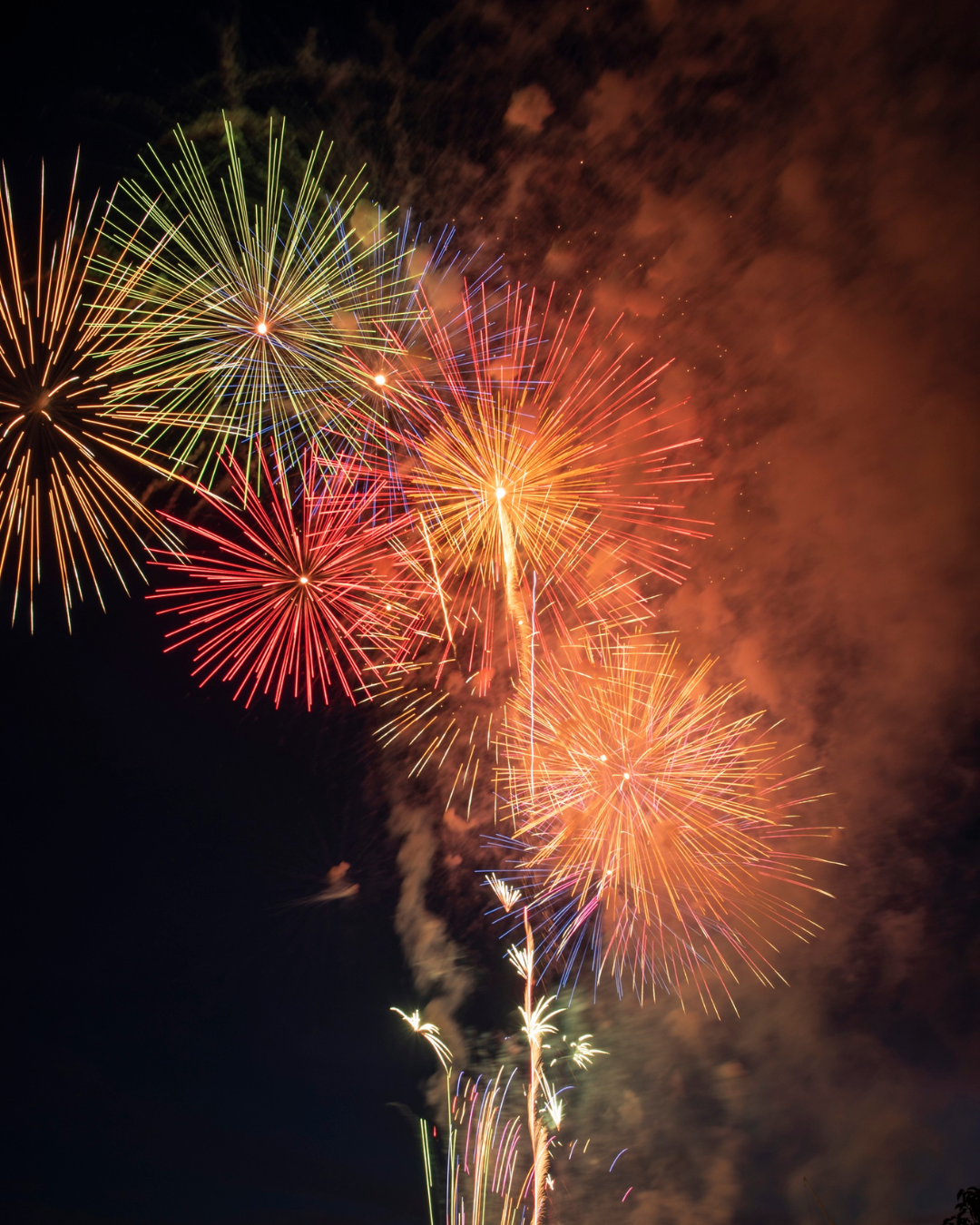 概要:サンセットビーチやアメリカンな街並みを背景に、週末の夜空を彩る打ち上げ花火。